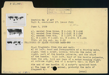 Dimensions:   P.H. a) 0.041, b) 0.049, c) 0.037, d) 0.013, e) 0.021; P.W. a) 0.082, b) 0.044, c) 0.06, d) 0.015, e) 0.021; Est. Diam. (lip) 0.13