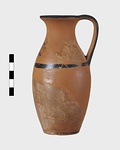 | Description: | Neck, handle and much of back wall missing. Flat bottom; gently rounding sides. Above, on the shoulder, painted in the glaze, the ligature delta-epsilon. Pinkish-buff clay. Glazed. Neck glazed inside; outside, a black glaze band at the bottom of the wall and another at the shoulder. Note another similar but with base (H. 0.10), with the inscription ΔΕΜΟΣΙΟΝ painted around the upper wall; Furtwängler (1885), Beschreibung der Vasensammlung im Antiquarium. Staatliche Museen zu Berlin. Antikensammlung , no. 2669; facsimile of inscription on Pl. III, form no. 291. | |