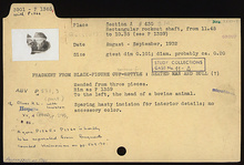 | References: | Publication: Agora XXIII Publication: Hesperia 15 (1946) Publication Page: Agora 23, s. 304, p. 288 Publication Page: Agora 23, s. 355, p. 339 Image: 2012.51.1069 (XXVI-4) Deposit: G 6:3 Deposit: G 6:3.1 Notebook: Α-8 Notebook Page: Α-8-31 (pp. 1411-1412) Card: P 1365 |