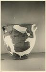| Description: | Part of rim and wall with one handle missing; restored in plaster. Shape similar to P 13701 (ΛΛ 1340), but larger and with heavier ring foot. Decoration in thin reddish-brown wash on neck and shoulder; four horizontal bands, a zigzag between the two lower, on the shoulder; smears down handles. Coarse buff to reddish clay; light buff slip. ADDENDA P 13701: Deep eggy body on ring foot; wide mouth with short straight neck and flat projecting rim. Horizontal handles on shoulder, up-tilted. | |