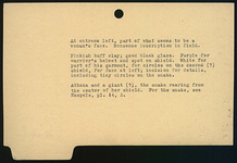 | Description: | Fragment from wall and rim of a cup with plain lip. Preserved is head of warrior to the left, with high-crested helmet; part of his shield(?) held in front of him, and of his spear passing behind his head. Opposed to him is an object which might be an opponent's shield; from its center a snake curves up to meet the black band which borders the zone; the boss of the shield extends toward the warrior. At extreme left, part of what appears to be a woman's face. Nonsense inscription in field. Purple for warrior's helmet and spot on shield. White for part of his garment, for circles on the second(?) shield, for face at left; incision for details, including tiny circles on the snake. Pinkish-buff clay; good black glaze. Athena and a giant(?) the snake rearing from the center of her shield. For the snake, see Haspels (1936), pl. 14.3. | |
