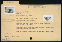 | Description: | Most of rim and a good part of neck preserved; filled out in plaster. Wide flat rim; neck narrowing slightly toward top, without perceptible curve. Coarse reddish clay, brown at surface, some grit. | |