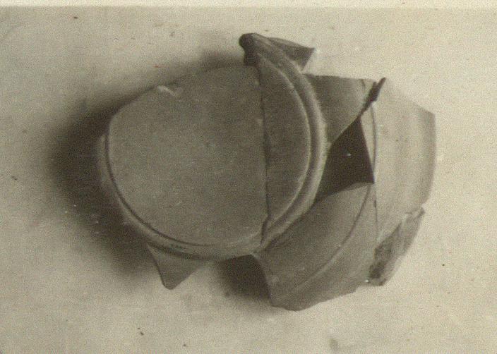 | Description: | Six joning fragments (plus two from rim not joining) preserve most of the center and the complete profile. Rim sharply offset on the inside. Around the bottom a moulded ring surrounds the resting surface. A narrow raised band round the outside higher up, and a smaller one just inside the edge of the rim. On both sides of this ring and these bands, and in the angle beneath the inner edge of the lip, considerable traces of bright pink (miltos?) are preserved. Fine clay, polished surface. Cf. Agora XII, no. 1003. | |