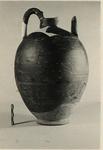 | Description: | Mouth, much of neck and handles, and fragments of body missing; restored in plaster. Shape similar to P 14023 (Φ 657), but more elongated. Pair of grooves around shoulder, and at base of neck. Scratched on shoulder: <graphic> Reddish to purplish glaze except toward foot. ADDENDA P 14023: Ring foot; egg-shaped body; straight rather narrow neck; rounded lip. | |