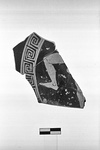 | Description: | Part of floor preserved. Inside: a border of maeander and a running figure, left, right leg with sharply bent knee and edge of left leg preserved. Outside: palmettes and scrolls. Relief contour for toes and lower line of thigh. Buff clay. Fair black glaze. | |