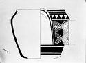 | Description: | Two fragments preserving both double rolled handles and part of the bottom. Straight side wall, inturned above the handle, glazed (once); and with reserved lunettes, filled by hand-drawn concentric half-circles, beside the handles. Flaky buff clay, much peeled. | |