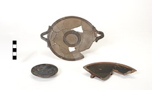 Description:   Mended from several pieces; complete except for chip. Small shallow saucer, roughly made on the wheel.
