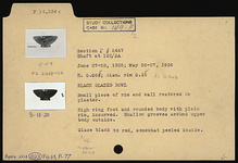 | Description: | Small piece of rim and wall restored in plaster. High ring foot and rounded body with plain rim, incurved. Shallow grooves around upper body outside. Glaze black to red, somewhat peeled inside. | |