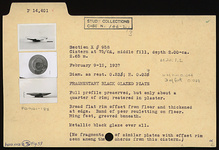| Description: | Full profile preserved, but only about one-quarter of rim. Restored in plaster. Broad flat rim offset from floor and thickened at edge; ring foot, grooved beneath. Band of poor rouletting on floor. Metallic black glaze overall. No fragments of similar plates with offset rim seen among the sherds from this cistern. | |