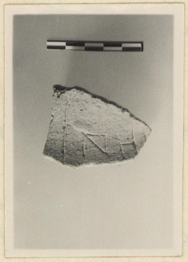 | Description: | Fragment from shoulder(?) of a large unglazed pot. <graphic> Gritty brownish clay. | |
