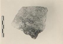 | Description: | Fragment of deep bowl; wall convex; lip slightly out-turned. Gritty gray to brown clay; black to brownish burnish inside and out, worn. | |