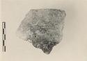 | Description: | Fragment of deep bowl; wall convex; lip slightly out-turned. Gritty gray to brown clay; black to brownish burnish inside and out, worn. | |