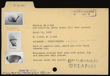 | Description: | Part of an amphora neck, short and with thick rounded lip. Incised below rim inside: <graphic> Micaceous pinkish-buff clay with grits; lip and shoulder only glazed. | |