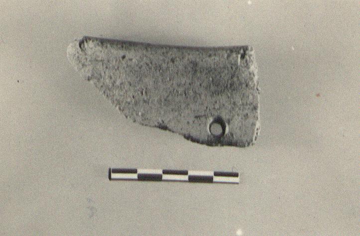 Description:   From the vertical rim of a large jar. A string hole at base of rim.
