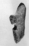 | Description: | Attachment at one end and a strut in the middle; probably a sort of vertical handle with horn rising above upper attachment, but also possibly the leg of a pot. Gritty brownish-buff clay, gray at core. | |