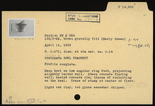 | Description: | Profile complete. Deep Samian A bowl on low angular ring foot, projecting slightly beyond wall. Steep concave flaring wall; keeled concave rim; traces of rouletting on the keel. Trace of stamp at center of floor (almost entirely broken away, no letters visible). Light red clay; red glaze somewhat chipped. | |