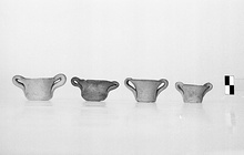 Description:   Intact. Plain rim, rough flat bottom. Rough attached vertical handles.