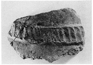 | Description: | Two joining fragments from wall of a pithos or other heavy pot. Wide horizontal ladder ornament in relief. Coarse gritty brown clay; unglazed | |