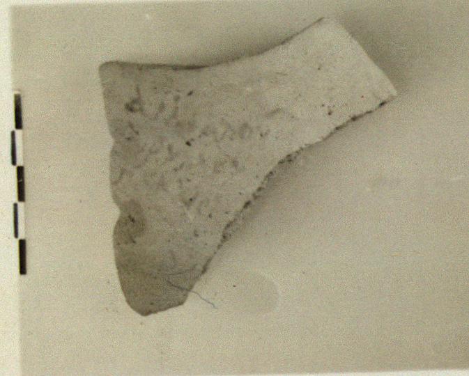 | Description: | From shoulder of coarse slightly ribbed amphora. In black on shoulder, three lines: <graphic> Granular light buff clay; unglazed. | |