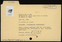 | Description: | From a coarse unglazed bowl(?) with small projecting rim, flattened on top. Incised inside: <graphic> A single letter(?) outside: <graphic> Brownish-pink clay. | |