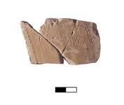 | Description: | Mended from three pieces; from an amphora with thin streaky glaze wash outside; pale buff clay. Incised outside, more or less vertically to the pot: <graphic> | |