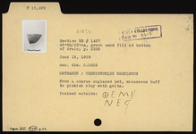 | Description: | From a coarse unglazed pot. Incised outside: <graphic> Micaceous buff to pinkish clay with grits. | |