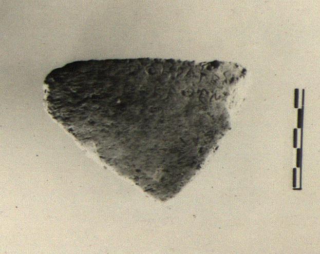 Coarse light buff to pinkish clay with large grits, unglazed.