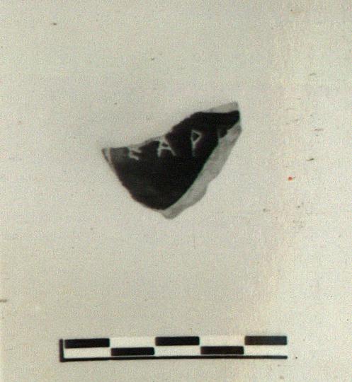 | Description: | From the floor of a black glazed kylix. Incised inside: <graphic> | |