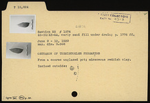 | Description: | From a coarse unglazed pot. Incised outside: <graphic> Micaceous reddish clay. | |