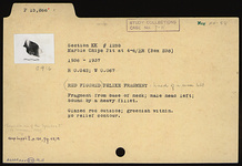 | Description: | Fragment from base of neck; male head left, bound by a heavy fillet. Glazed red outside; greenish within. No relief contour. | |
