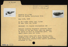 Description:   Several joining fragments preserve about one-third of lip and bowl, and one handle. No trace of foot on preserved part. One small piece does not join. Broad rather deep bowl with flaring wall, curving over to form a plain drawn-in lip. One horizontal skyphos-like handle preserved, attached to lip.