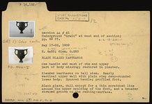 | Description: | One handle and most of rim and upper part of body missing; restored in plaster. Slender kantharos on tall stem. Nearly vertical upper wall with plain rim; deep rounded lower body. Spurred handle; profiled foot. Thin scratched line around the upper moulding of the foot, and a broader scraped groove on the resting surface. Dull black glaze. Cf. Menon's cistern no. 4. | |