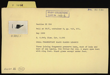 | Description: | Three joining fragments preserve base, much of body and most of one handle. Rim fitted for lid. A small open bowl with ring foot. Black glaze except under foot. | |