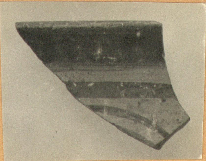 | Description: | Fragment from rim. Decorated with concentric circles. Glazed inside. | |
