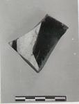 Description:   Fragment of sizable pot, unglazed inside: perhaps a stand. On exterior, parts of a pair of legs done in added white over the reserved ground. Trace of some object, reserved, at right.