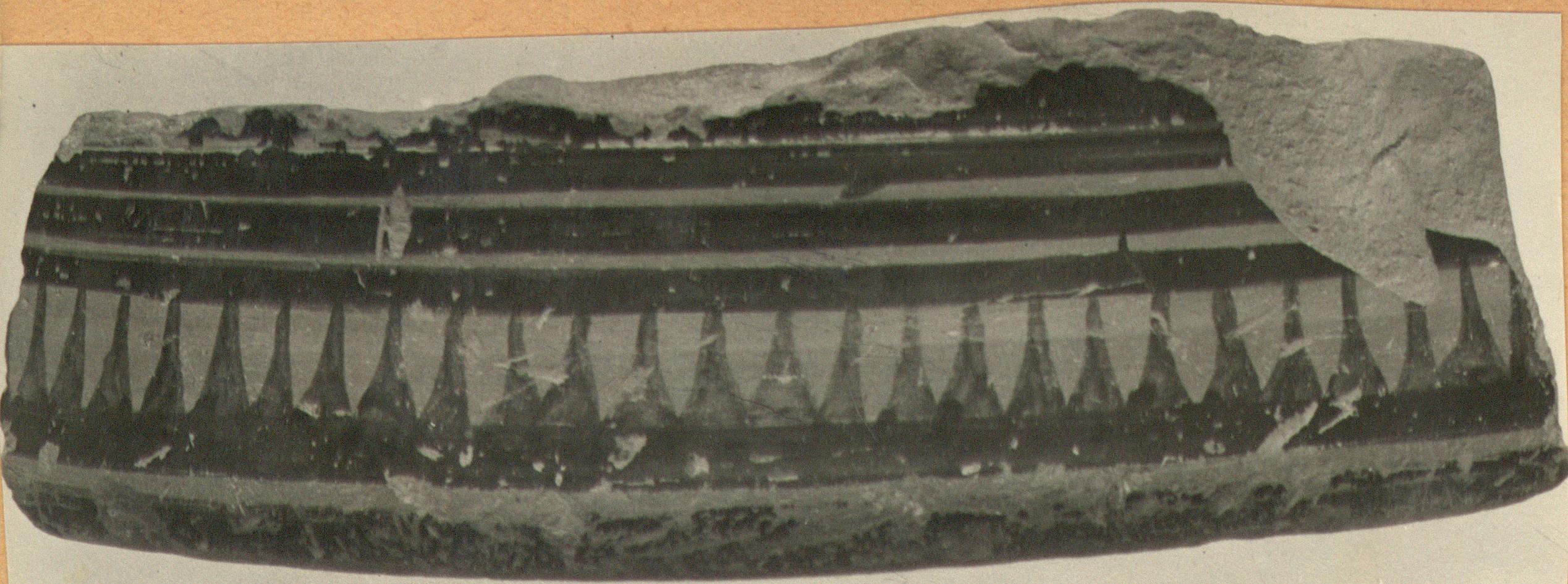 Bands and tooth pattern. Tooth pattern in dilute wash. Bottom much worn.
