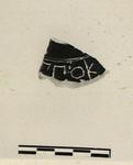 | Description: | Part of a kylix base; groove around upper face; torus edge and resting surface reserved. Incised on upper face: <graphic> | |