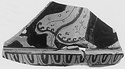 Brown wash on hair and tympanum. Glaze rather dull and streaky. A reserved groove around the lip, and another at the base of the wall.
