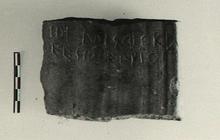 | Description: | Fragment of rim of large coarse basin; diameter of rim not less than 0.44m. Three deep angular grooves on exterior. Incised on interior: <graphic> Orange-buff micaceous clay with bits; no glaze or slip. | |