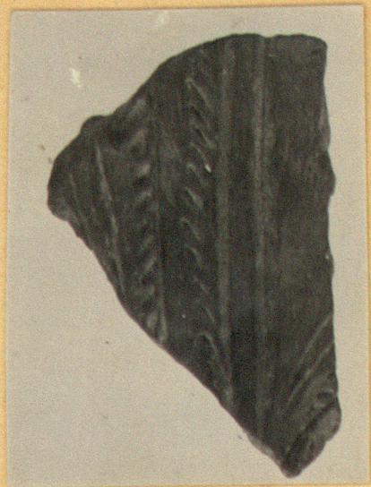 | Description: | Incised decoration: vertical panel of herringbone. Handmade polished ware. A fragment of another tripod foot, apparently belonging with this one, was found at the east end of the house floor (P 1628). | |