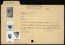 | Description: | A single fragment preserves some of rim and body. At rim, reversing spirals, then egg and dart. Long petals on body. | |