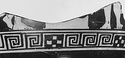 | Description: | Many pieces make up to two non-joining fragments. a) Twelve joining fragments preserve part of wall, projecting rim and part of one handle stump. Ground line of maeander and crosses; floral pattern beside handle; standing draped woman, right, hand of another figure in front of her. Some relief contour, added white for three-spiked headdress on the woman. b) Nineteen joining fragments preserve about two-thirds of lower body and edge of attachment for other handle. At left of floral ornament below handle, lower part of draped figure walking left; at right of handle, to each side of altar-like structure a pair of bare feet and legs. Behind left pair, a bowl-like object on the ground. | |