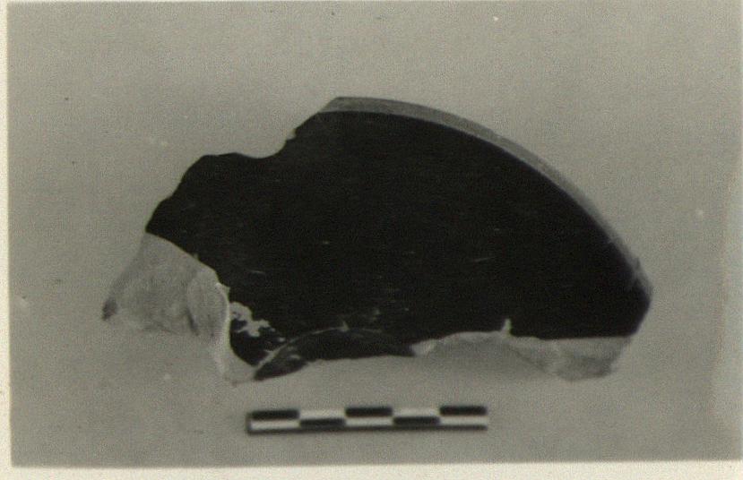 | Description: | Single fragment with part of foot, of rim and of floor with edge of central depression. Ring foot; rim without overhang, grooved on its outer surface. Black glaze except for reserved bands at edge of floor, resting surface, and junction of ring foot and bottom. | |