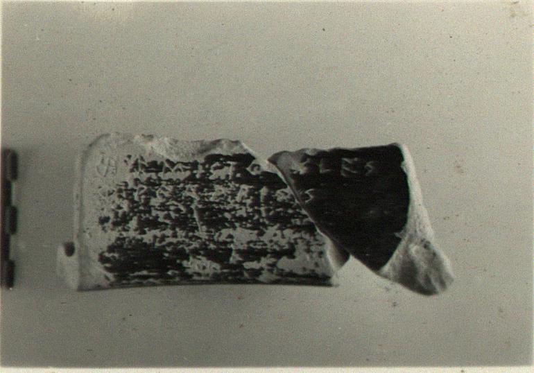 | Description: | Two joining fragments from rim of a semi-glazed krater. Incised through the black glaze inside: <graphic> | |