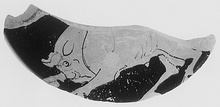 | Description: | Fragment from upper body, with the spout broken off left. Bull charging left. ADDENDA Same hand, P 6506. | |