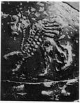 | Description: | Two non-joining fragments, mended from five, preserve bottom, parts of wall and rim. Restored in plaster. Bottom: gorgoneion surrounded by relief mouldings. Body: pegasoi, seated female double flute players, birds, dolphins and sea monsters. Maeander below rim and a scraped groove below slightly projecting lip. Glaze dull black to reddish-brown. | |