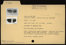 | Description: | Two non-joining rim fragments. Body: irregularly shaped lozenges. Below rim: egg pattern and double scrolls with palmettes. Scraped groove below slightly projecting lip, with traces of miltos. Black glaze, somewhat peeled. | |