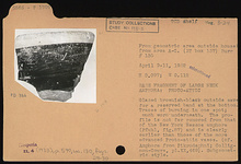 | Description: | Base fragment of large neck amphora. Glazed brownish-black outside save for a reserved band at the bottom. Traces of burning in one spot; much worn underneath. The profile is not far removed from that of the New York Nessos amphora (Pfuhl (1923), fig. 87) and is clearly earlier than those of the more advanced Protoattic vases (cf. amphora from Pikrodaphni; Collignon-Couve (1902-1904), pl. XX:469). Subgeometric style. | |
