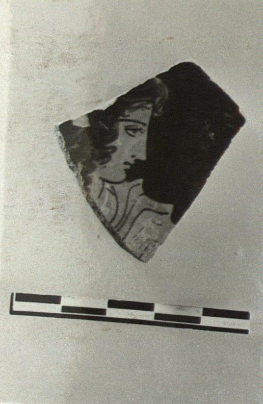 | Description: | Fragment from wall of a krater; glazed inside. Face and left shoulder of a draped youth, right. | |