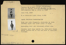 Description:   Body and neck fragments restored; no join between upper and lower parts of body. Spreading foot and thickened offset rim.